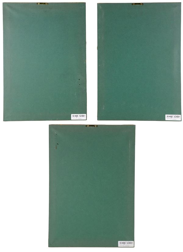 cornici in legno dorato e laccato bianco, cm 49 x 32 ciascuna.