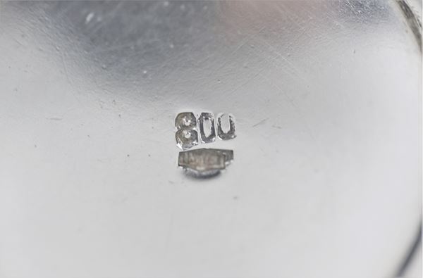 Lotto in argento di uno spargizucchero e due salierine traforate con vaschette in cristallo (3 pz), gr. 210