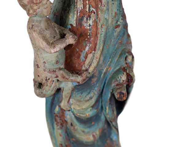 "Madonna con Bambino", antica piccola scultura in legno policromo