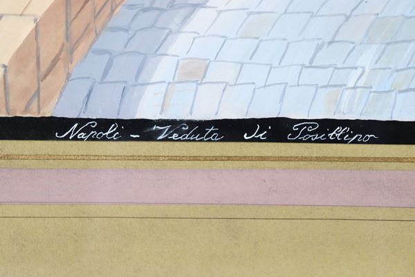"Napoli con veduta di Posillipo", gouache napoletana su carta