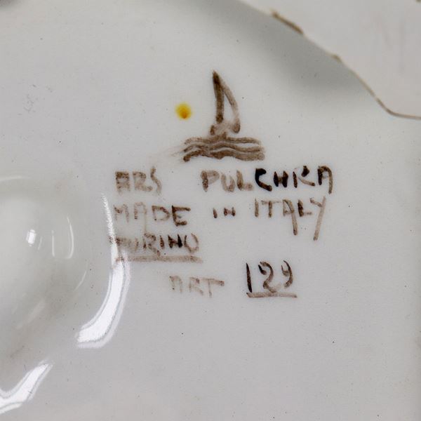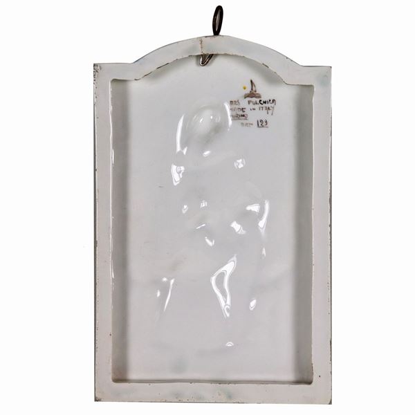 Piccola scultura "Madonna con Bambino", in ceramica smaltata e porcellanata