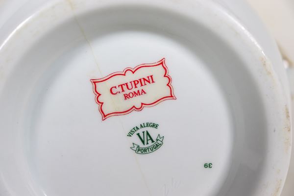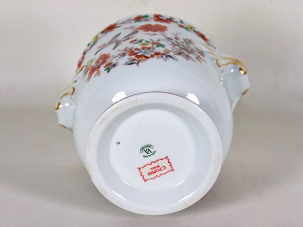 Piccolo cachepot in porcellana portoghese, con decorazioni in smalto a rilievo a motivi di fiori e uccelli
