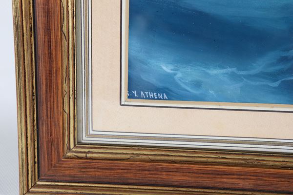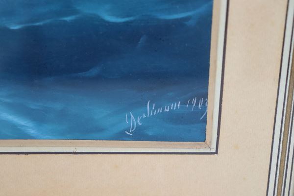 Firmata e datata 1903. "Piroscafo a vela in navigazione", gouache su carta