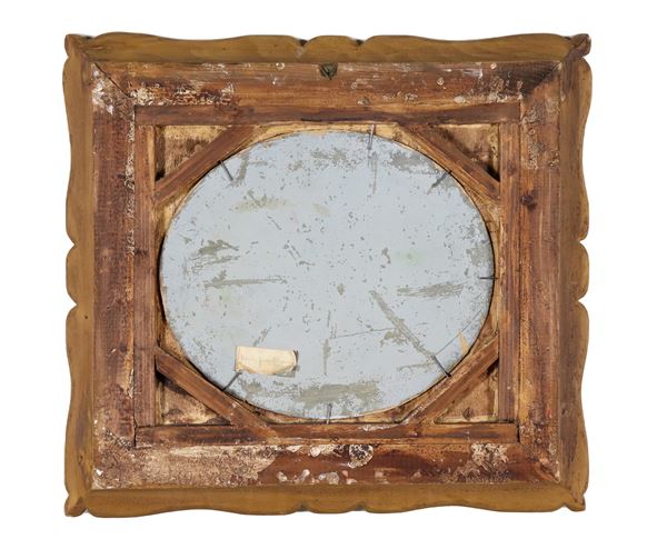 antica cornice in legno dorato e intagliato, cm 26 x 30.