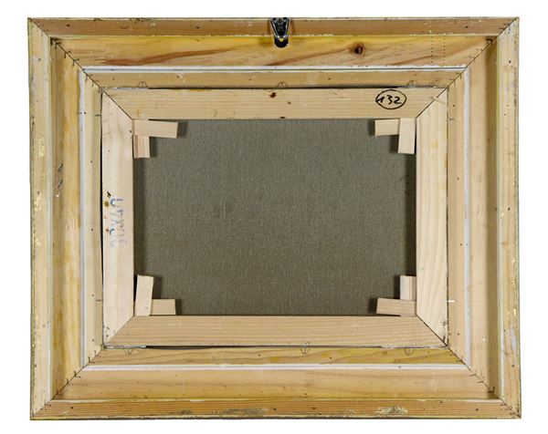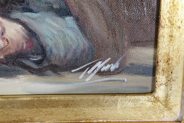 Firmato. "Giocatori di carte", dipinto ad olio su tela