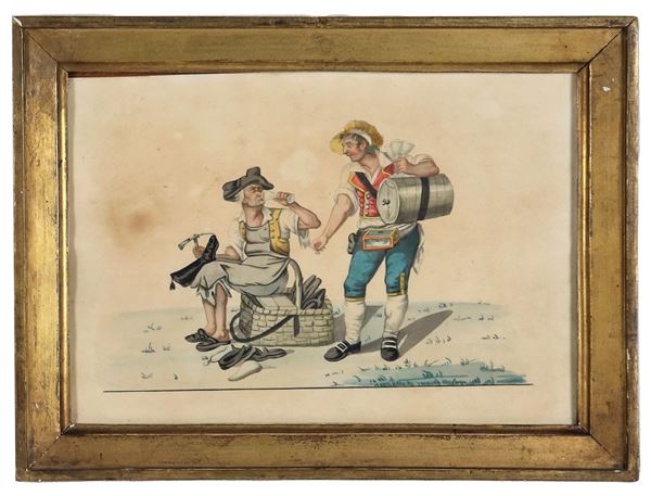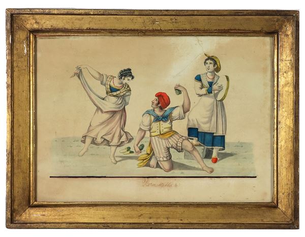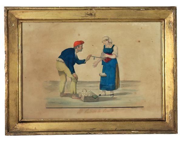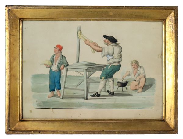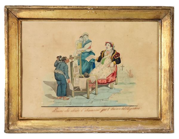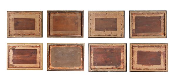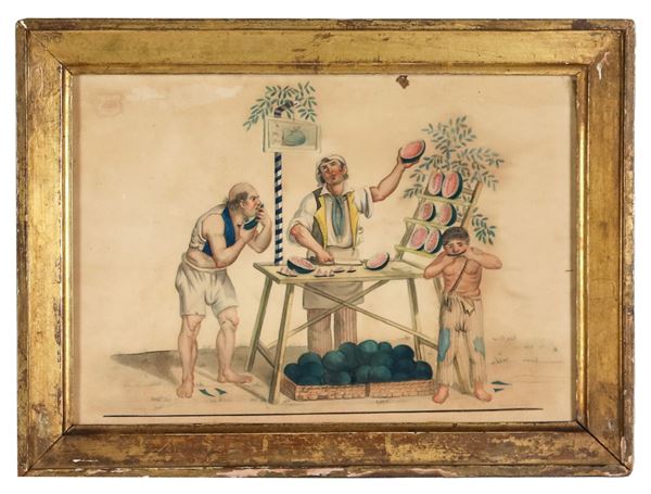 "Scene popolari napoletane", lotto di otto piccoli acquarelli su carta