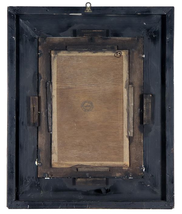 Firmato. "Ritratto di ragazza", dipinto ad olio su tavoletta