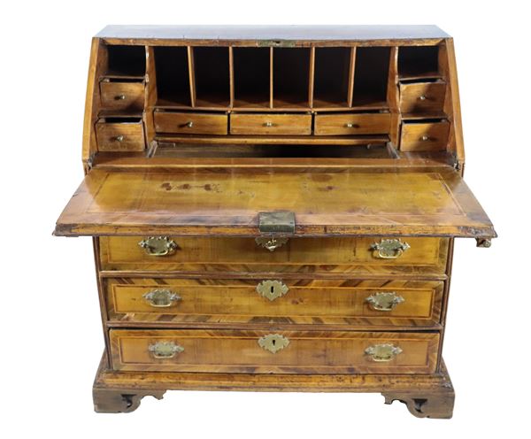 Ribalta inglese Giorgio III (1760-1819) in noce, con filettature intarsiate in legno satinato