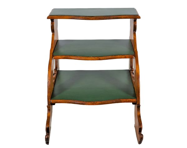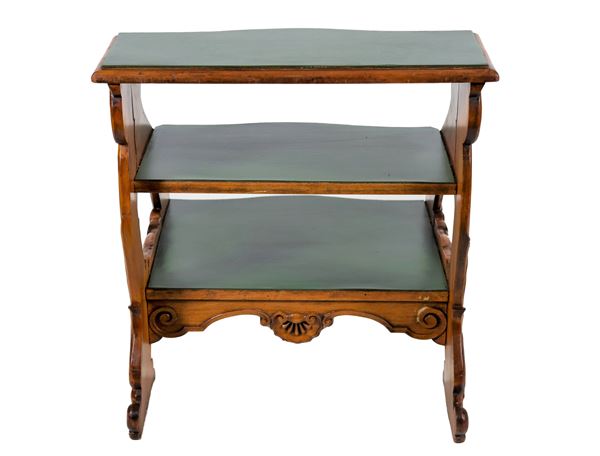 Scaletta da biblioteca in noce, con montanti e gradini intagliati a rilievo a motivi Luigi XIV