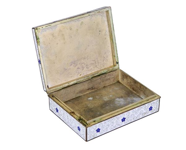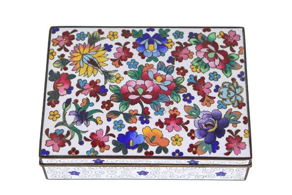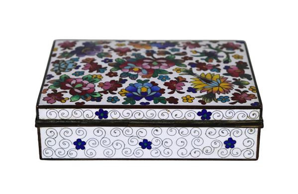 Scatola giapponese in smalto cloisonné, con decorazioni policrome a motivi floreali