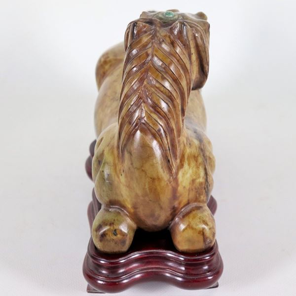 Scultura cinese in giada 'Cavallo', basetta in teak