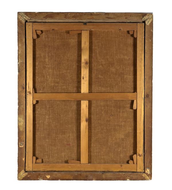 cornice in legno argentato, cm 95 x 75.