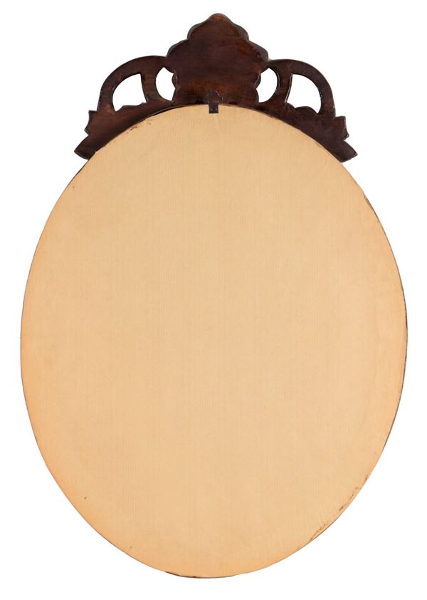 cornice dell'epoca in noce con cimasa intagliata, cm 43 x 34.