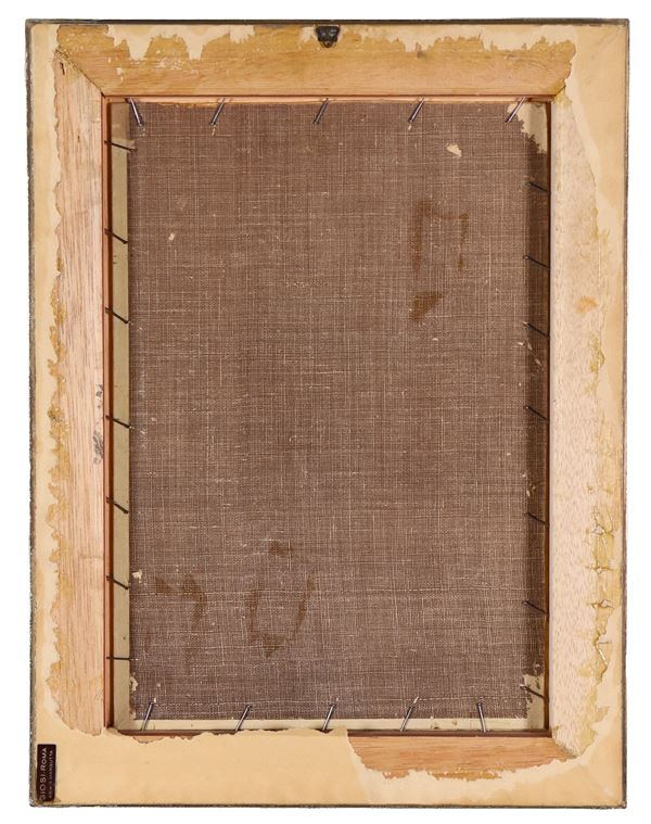 "Vecchio contadino con vaso", piccolo dipinto ad olio su tela applicata a cartone