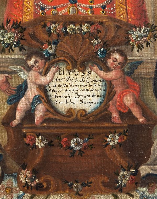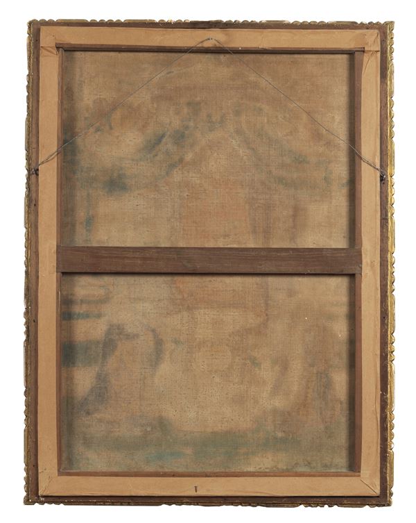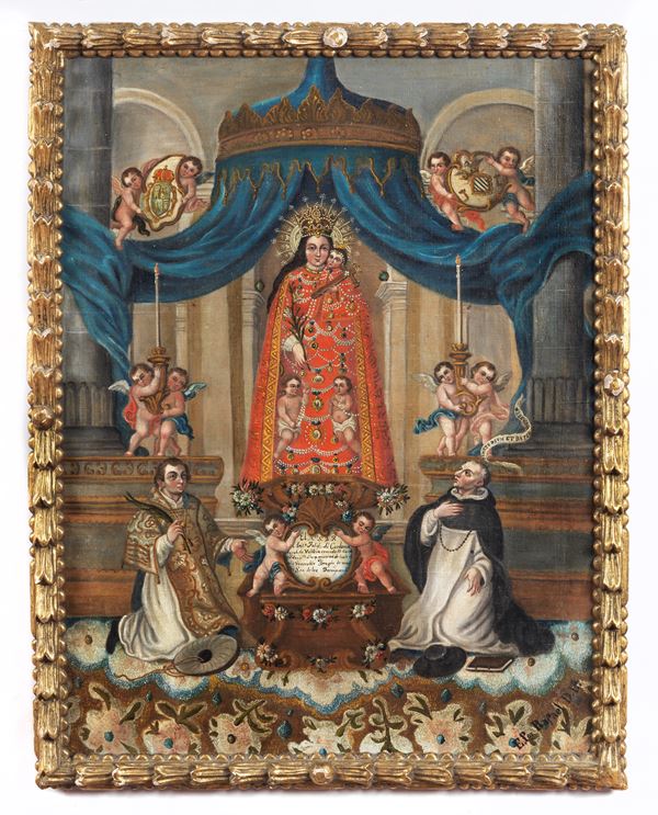 "Madonna con Bambino, Santi e Angioletti", luminoso dipinto ad olio su tela