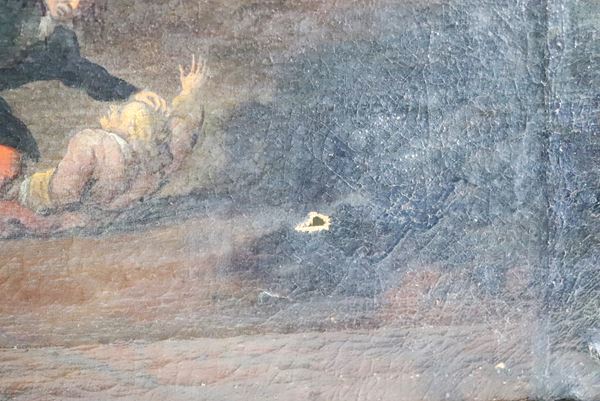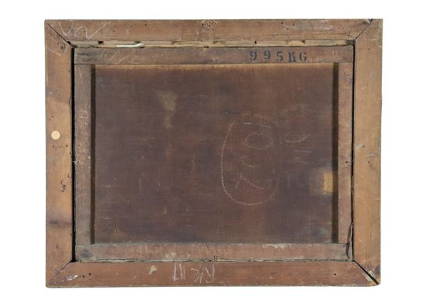 antica cornice in legno dorato. Difetto alla tela, cm 56 x 73.