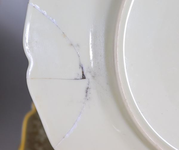 composto da: 11 fondine, 28 piatti piani, 10 piattini di cui uno con rottura al bordo, 1 zuppiera, 1 insalatiera, 1 burriera, 1 salsiera, 2 piatti tondi da portata di cui uno concavo, 2 fruttiere e 2 piatti ovali da portata, uno grande e uno piccolo.
