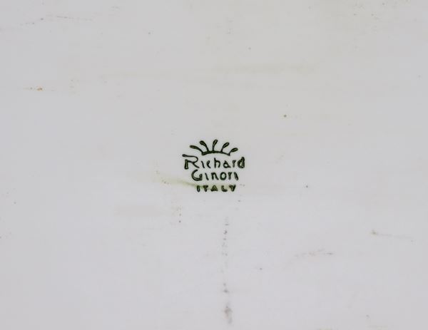 Servizio Egoiste da caffè in porcellana bianca e oro Richard Ginori, con decorazioni a fasce policrome a motivi di intrecci floreali (5 pz)
