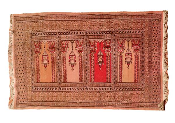 Tappeto Mujur a preghiera a fondo avana, rosso e ocra, M. 1,45 x 0,81