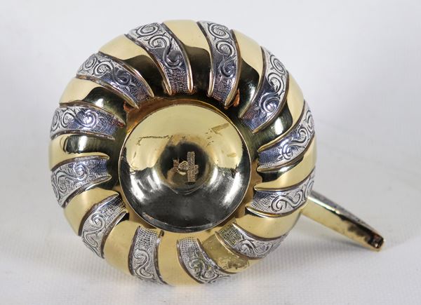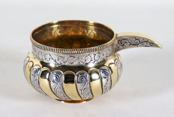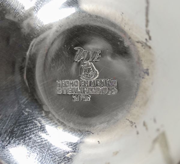 Tazza assaggiavino messicana in argento Sterling 925 sbalzato e dorato, gr. 185
