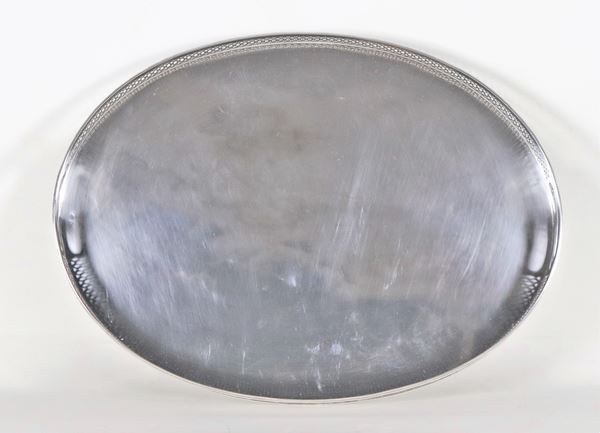 Vassoio ovale in argento con ringhierina cesellata e traforata, gr. 1440