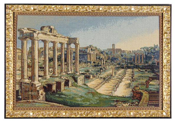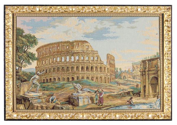 "Vedute del Foro Romano e del Colosseo" coppia di tessuti ricamati