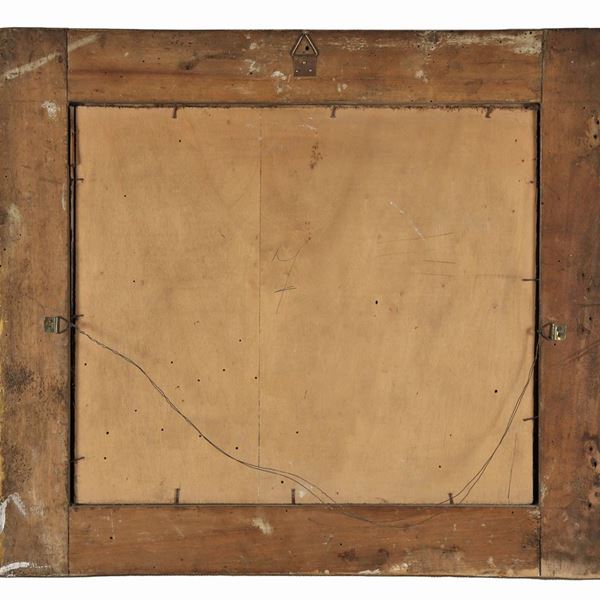 antica cornice in legno dorato e intagliato a motivi Impero, la carta è danneggiata, cm 36 x 42.