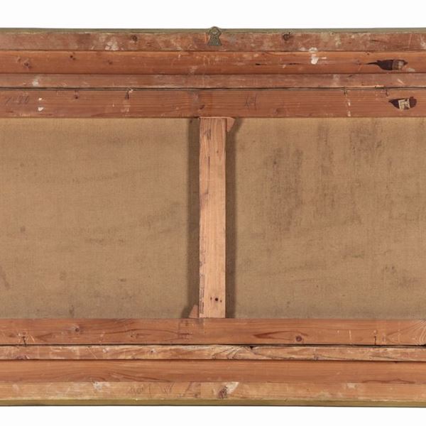 cornice in legno dorato e intagliato a stucco, cm 46 x 102.