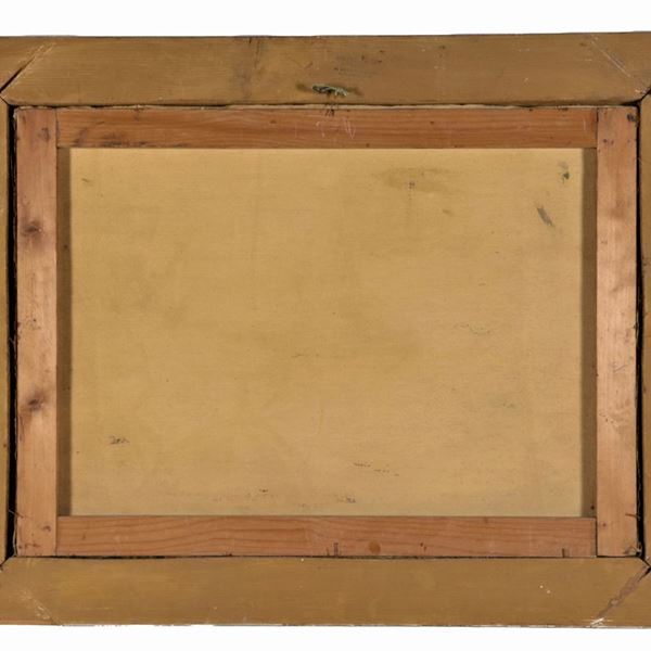 cornice in legno dorato che presenta tracce di tarli, cm 58 x 80.
