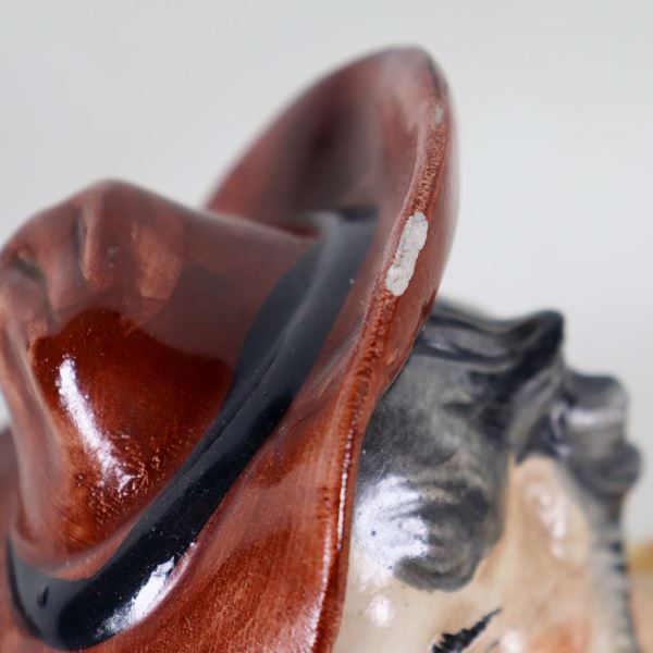 "Bevitore", scultura in ceramica porcellanata e smaltata Capodimonte, due lievi mancanze