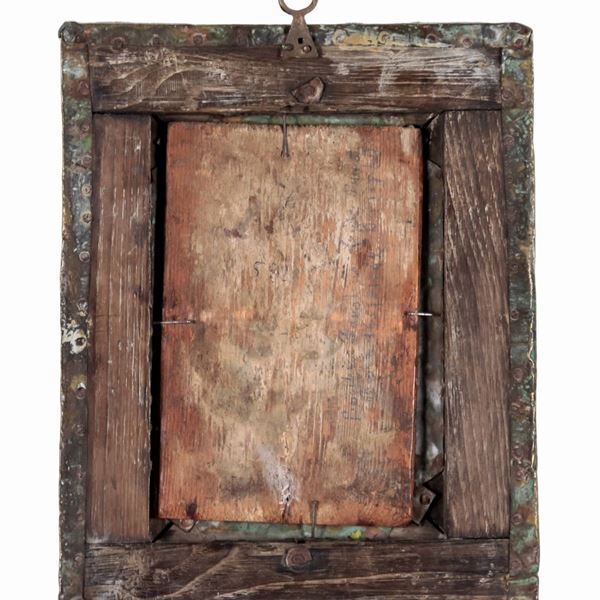 Bottega di. "Suonatore di liuto", piccolo dipinto ad olio su tavoletta