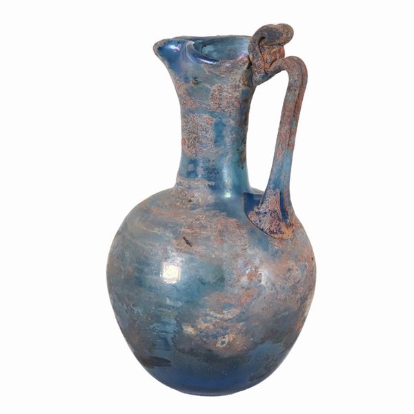 Brocca in vetro celeste madreperlato