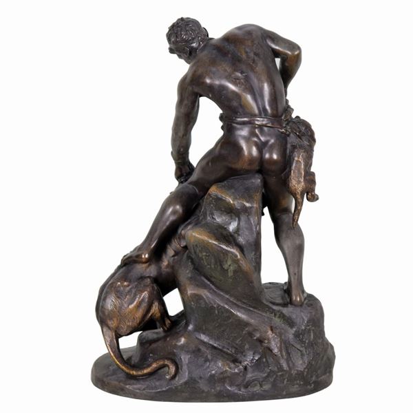 Firmato. "La caccia al leone", gruppo in bronzo