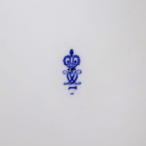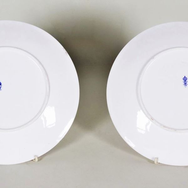 Coppia di piatti da muro in porcellana francese, con decorazioni in smalti a rilievo a chinoiserie