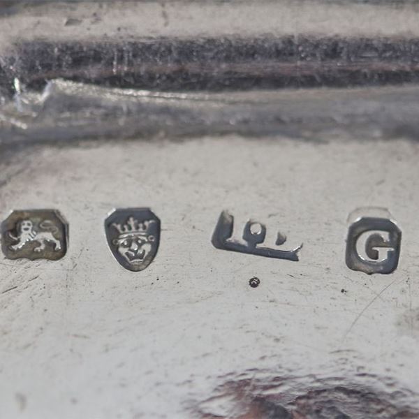 Coppia di saliere in argento Epoca Giorgio III con bordi cesellati e sbalzati, gr. 160