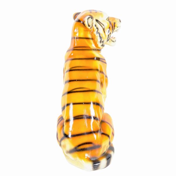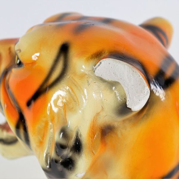 "Cucciolo di Tigre", piccola scultura in ceramica porcellanata e smaltata a varie policromie