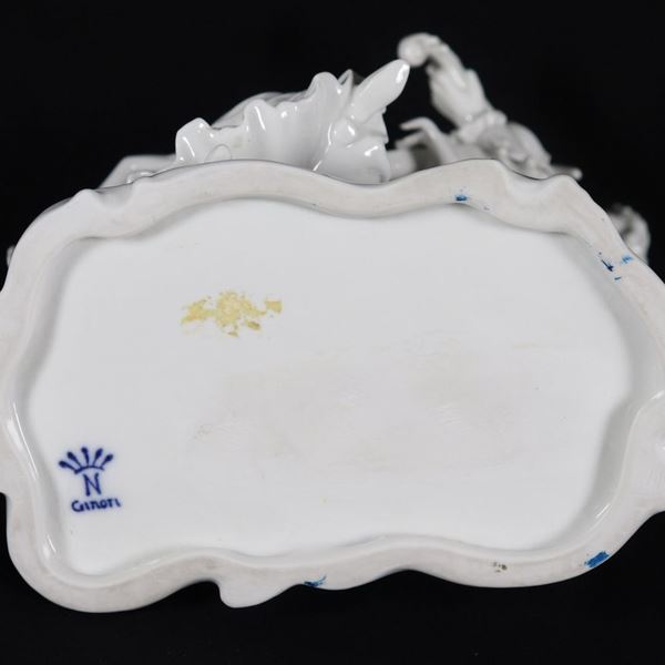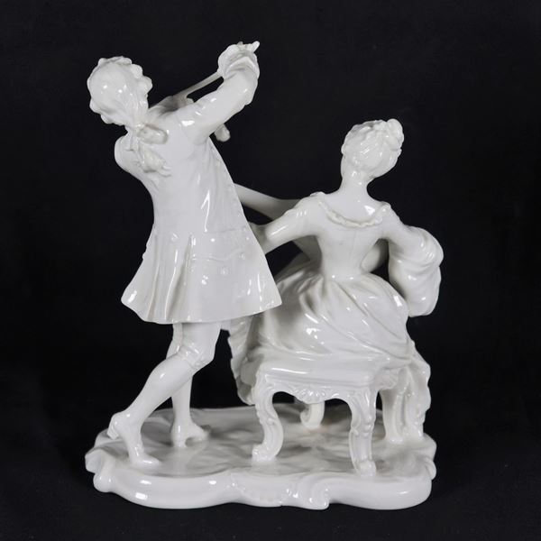"Dama e cavaliere suonatori", piccolo gruppo in porcellana bianca Ginori