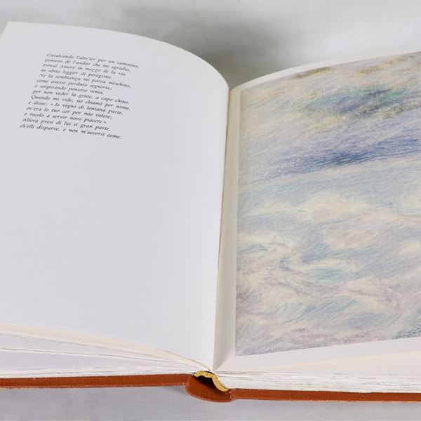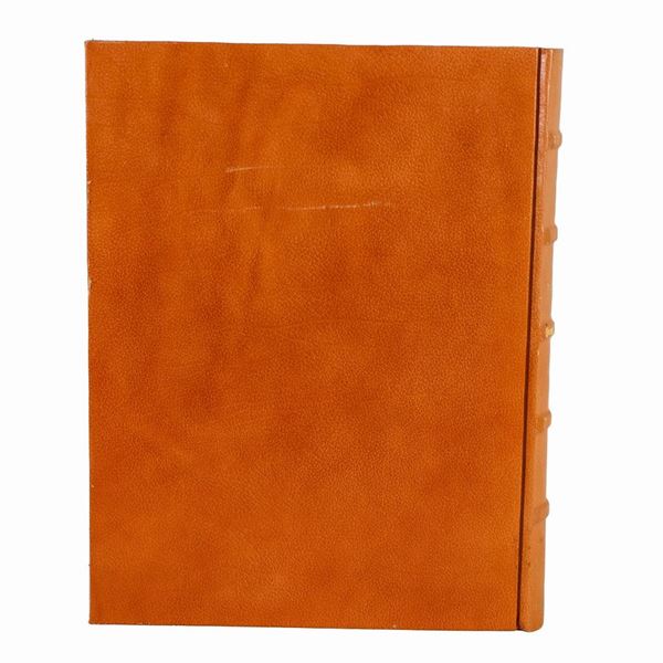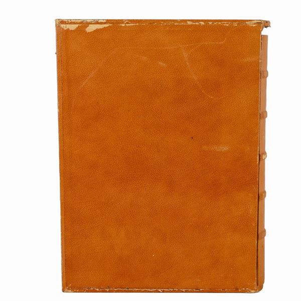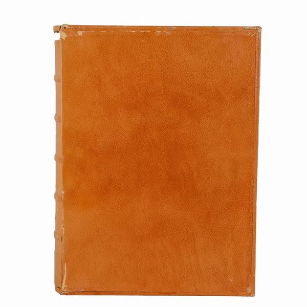 Legatura in pelle, titoli in oro e cofanetto in pelle con segni di usura. Allegata carta d'identità dell'opera su lastra a firma Giuseppe Selvaggi, cm 42 x 33.