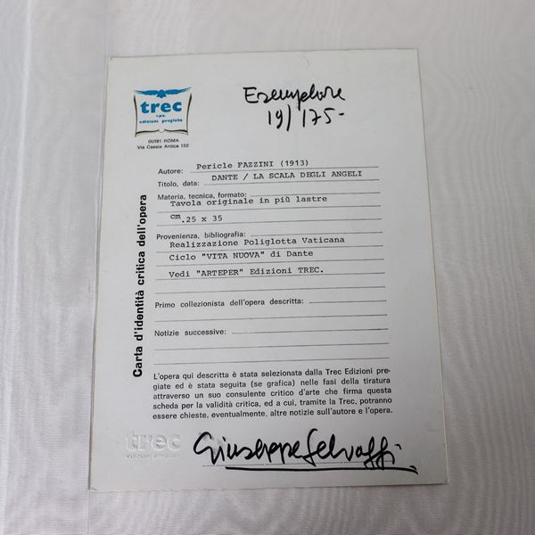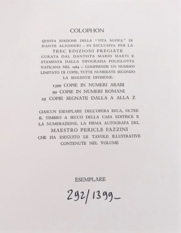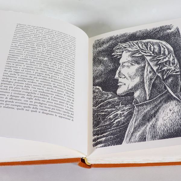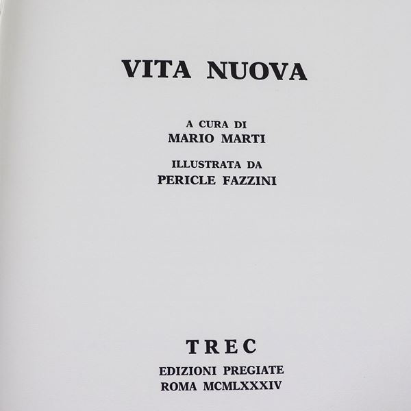 Dante Alighieri "Vita Nuova" illustrata e autografata da Pericle Fazzini e curata da Mario Marti. Sul piatto anteriore del volume bassorilievo [..]