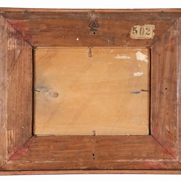 Firmato. "Veduta di villa a Capri", piccolo dipinto ad olio su tavoletta