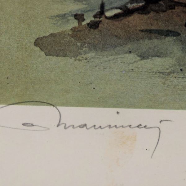 Litografia a colori "Veduta della Chiesa di San Giorgio al Velabro con l'Arco di Giano"