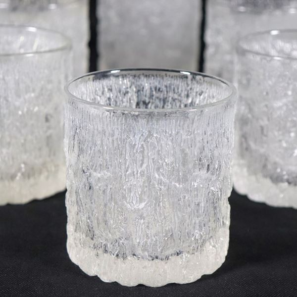 Lotto di 18 bicchieri tumbler in mezzo cristallo, lavorati a effetto glacé