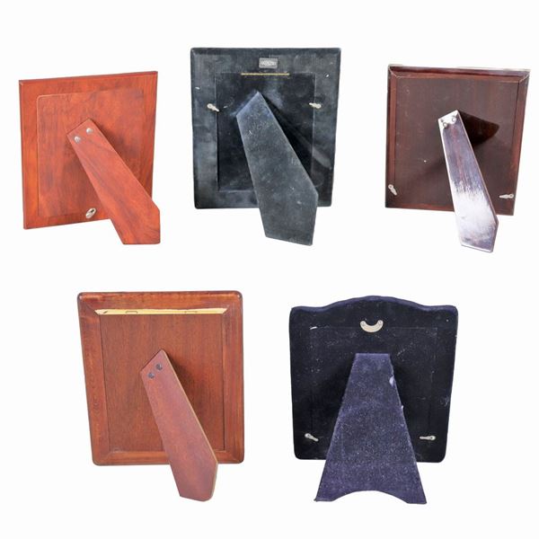 Lotto di cinque cornici portaritratti in argento cesellato e sbalzato