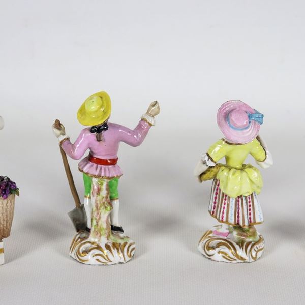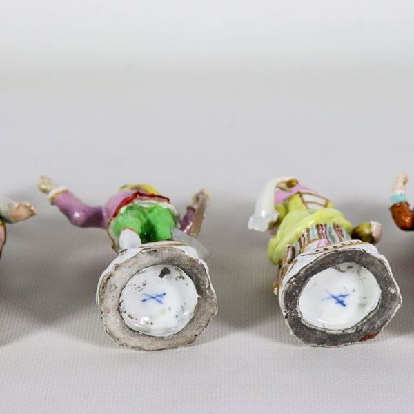 Lotto di quattro antiche statuine "Fanciulli", in porcellana policroma di Meissen e Sassonia