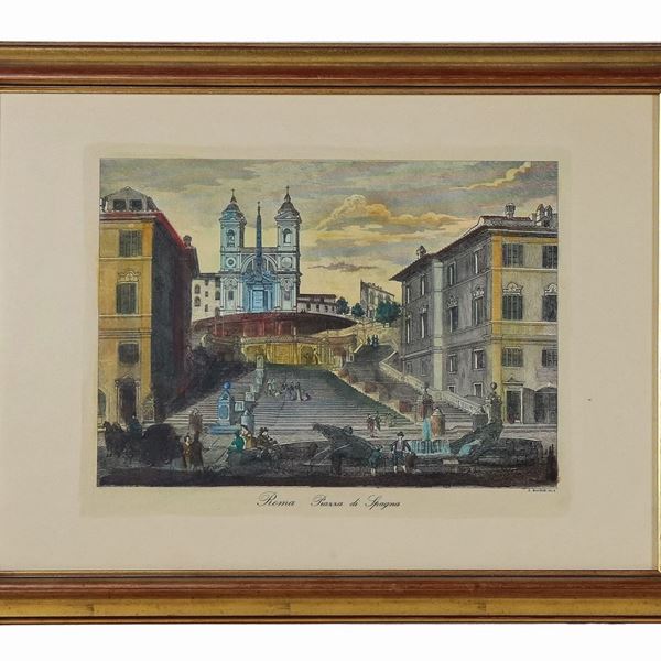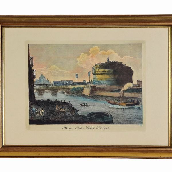 Lotto di quattro stampe a colori "Vedute di Roma"