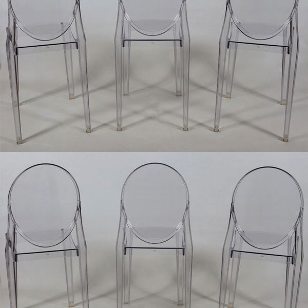 Lotto di sei sedie Victoria Ghost, design Starck by Kartell, in policarbonato