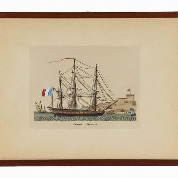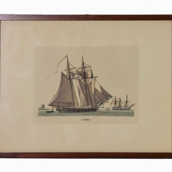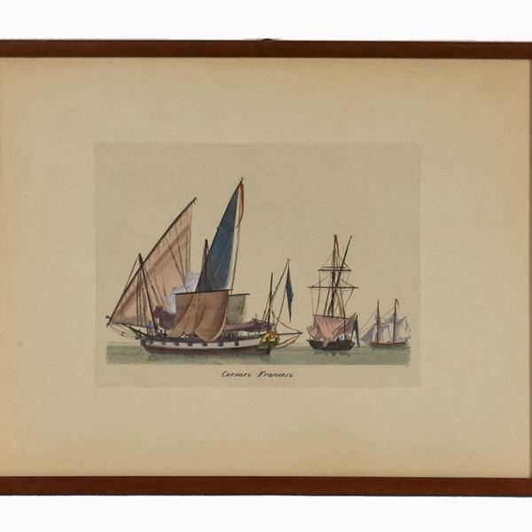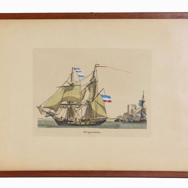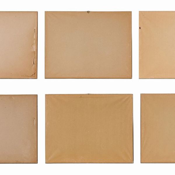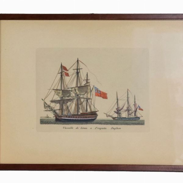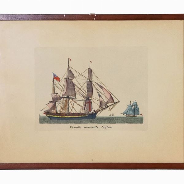 cornicette in noce e passepartout, cm 20 x 26 ciascuna.