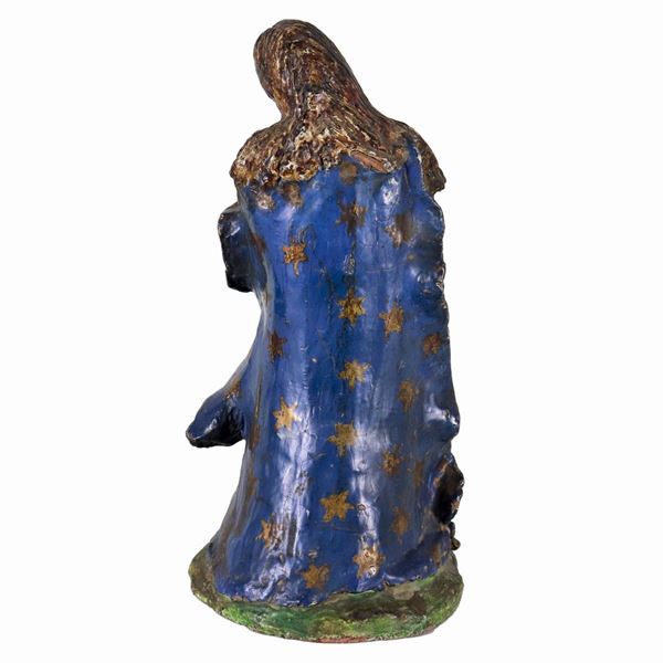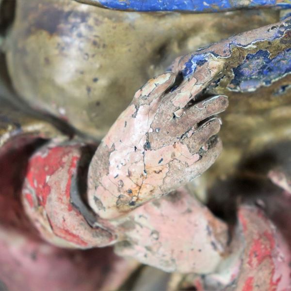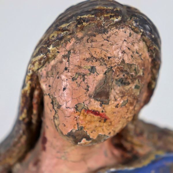 "Madonna", antica scultura in terracotta policroma. Difetti