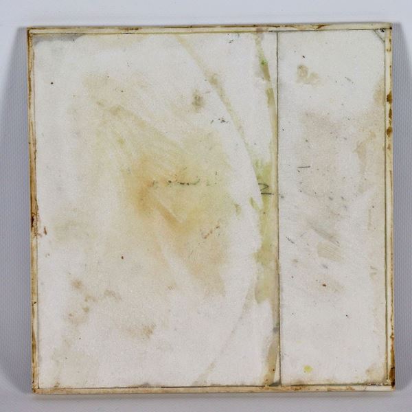 Mattonella in marmo bianco con "campionario" di vari marmi pregiati