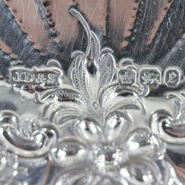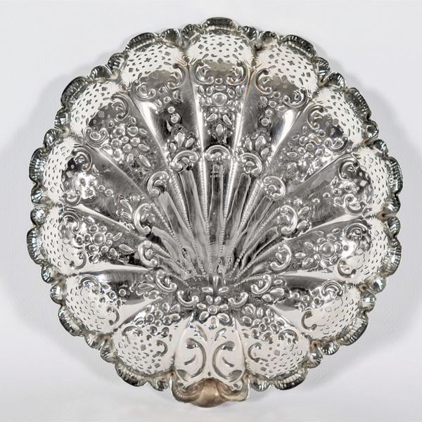 Piccolo centrotavola a forma di conchiglia in argento cesellato, sbalzato e traforato, Epoca Regina Vittoria, gr. 290